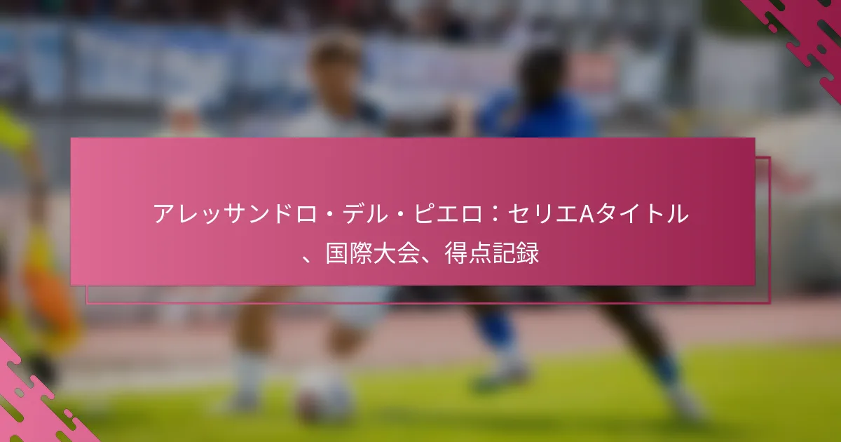 アレッサンドロ・デル・ピエロは、セリエAの伝説的な存在であり、数々のタイトルとイタリアサッカーへの素晴らしい貢献で称賛されています。FIFAワールドカップやUEFA欧州選手権を含む主要な国際大会への参加は、彼のスポーツへの影響をさらに際立たせています。印象的な得点記録で知られるデル・ピエロの一貫性と才能は、彼をサッカー史上最も偉大なフォワードの一人として確立しました。 アレッサンドロ・デル・ピエロのセリエAタイトルは何ですか? アレッサンドロ・デル・ピエロは、華々しいキャリアの中で複数のタイトルを獲得したセリエAの最も称賛される選手の一人です。イタリアのトップサッカーリーグでの彼の業績は、彼の個々の才能と彼が所属したチームの強さを反映しています。 獲得したセリエAタイトルのリスト デル・ピエロはキャリアを通じて合計6つのセリエAタイトルを獲得しました。これらの選手権は、彼の一貫性と多くのシーズンにわたる高いレベルでのパフォーマンスを強調しています。 1994-1995 1996-1997 1997-1998 2001-2002 2002-2003 2011-2012 タイトルを獲得したシーズン デル・ピエロのセリエAタイトルは1990年代半ばから2010年代初頭にかけて広がっており、リーグでの彼の長寿を示しています。彼の最初のタイトルは1994-1995シーズンに獲得され、2011-2012シーズンの最終タイトルまでトロフィーキャビネットを増やし続けました。 彼の最も支配的な時期は1990年代後半から2000年代初頭であり、ユベントスの成功において重要な役割を果たしました。この時代は、彼のクラブレジェンドとしての地位とセリエA史における重要な選手としての地位を確固たるものにしました。 タイトル獲得時に所属していたチーム デル・ピエロは、競争心と成功で知られるクラブ、ユベントスでのセリエAキャリアを全うしました。彼のチームへの忠誠心は、彼の在籍中にイタリアサッカーでの支配に大きく貢献しました。 ユベントスでプレーすることで、デル・ピエロは国内タイトルだけでなく、欧州大会も含む勝利の文化の一部となりました。これらの年に他の偉大な選手たちとのパートナーシップは、彼のプレーとチームのパフォーマンスを高めました。 各タイトルの重要性 デル・ピエロが獲得した各セリエAタイトルは、彼のキャリアにおけるマイルストーンであり、彼のスキルと決意の証です。1994-1995年のタイトルは、彼のチャンピオンとしての旅の始まりを示し、以降のタイトルはユベントスの歴史における重要な人物としての地位を確立しました。 2001-2002年と2002-2003年のシーズンは特に重要であり、デル・ピエロがキャプテンとしてチームをリードし、重要な場面で活躍する能力を示しました。これらのシーズンでの彼の貢献は決定的であり、しばしば勝利を確保する重要なゴールを決めました。 他のセリエA選手との比較分析 デル・ピエロを他のセリエAのレジェンドと比較すると、彼の6つのタイトルはエリートの中に位置付けられます。ジュゼッペ・メアッツァやアレッサンドロ・ネスタのような選手も大きな成功を収めましたが、デル・ピエロのユベントスでの長寿と影響力は彼を際立たせています。 彼の得点記録とプレーメイキング能力は、彼のレガシーをさらに強化し、彼はセリエA史上のトップスコアラーの一人としてランクされています。このタイトルと個々の栄誉の組み合わせは、彼をイタリアサッカーにおけるユニークな存在にしています。 アレッサンドロ・デル・ピエロはどの国際大会に参加しましたか? アレッサンドロ・デル・ピエロは、FIFAワールドカップやUEFA欧州選手権を含むいくつかの主要な国際大会に参加しました。彼の貢献は、キャリアの中でイタリアのサッカーのレガシーを形作る上で重要でした。 参加した国際大会の概要 デル・ピエロは4回のFIFAワールドカップ(1998年、2002年、2006年、2010年)にイタリア代表として出場し、3回のUEFA欧州選手権(2000年、2004年、2008年)にも参加しました。彼の国際キャリアは10年以上にわたり、世界舞台での才能を示しました。 彼の最も顕著な業績は、2006年のワールドカップでイタリアがチャンピオンとなった際のもので、これらの大会でのデル・ピエロのパフォーマンスは、彼をイタリアの偉大な選手の一人としての評判を確固たるものにしました。 各大会での注目すべきパフォーマンス 1998 FIFAワールドカップ:デビューを果たすも得点はなし。 2000 UEFA欧州選手権:準決勝でオランダ相手に記憶に残るゴールを決める。 2002 FIFAワールドカップ:グループステージでゴールを決めるも、イタリアは早期に敗退。 2004 UEFA欧州選手権:イタリアのキャンペーンに貢献するも得点はなし。 2006 FIFAワールドカップ:フランスとの決勝で得点し、イタリアのタイトル獲得に貢献。 2008 UEFA欧州選手権:重要な役割を果たすも、イタリアは準々決勝で敗退。 国際大会での業績 デル・ピエロの国際的な業績には、2006年のFIFAワールドカップの優勝と2000年のUEFA欧州選手権の