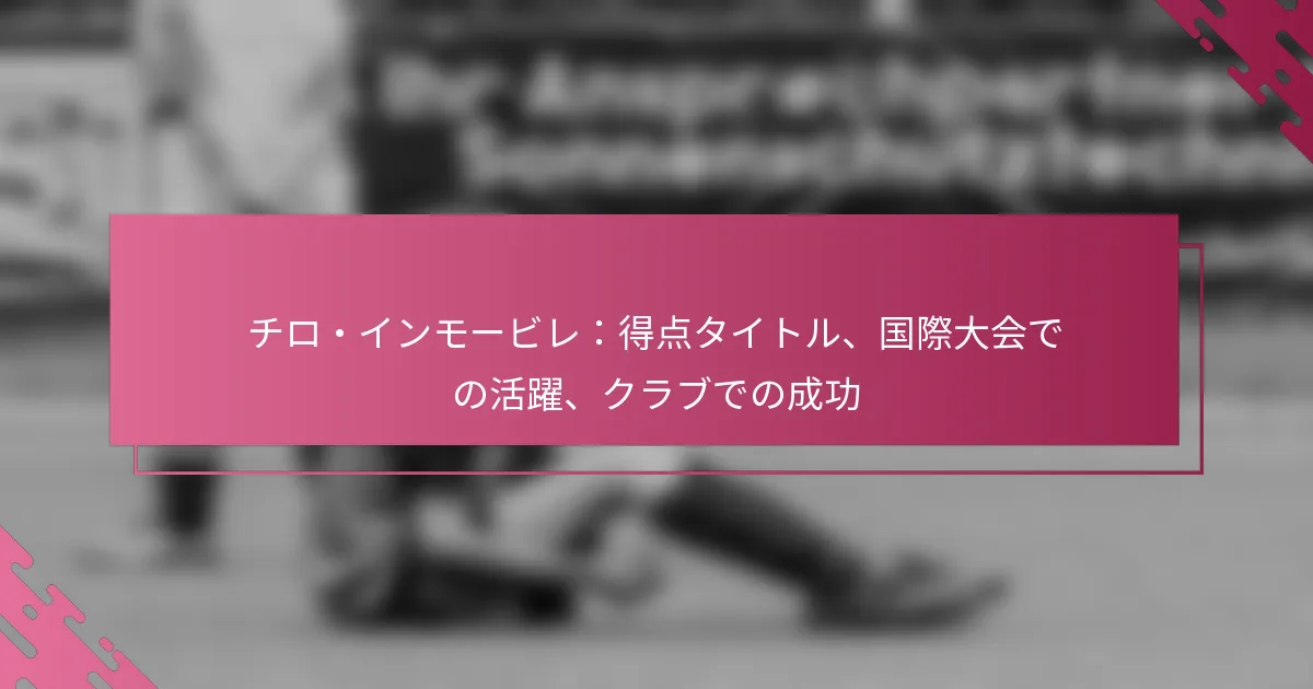 チーロ・インモービレは、ヨーロッパのトップストライカーの一人としての評判を確立し、キャリアを通じていくつかの権威ある得点タイトルや複数のゴールデンブーツ賞を獲得してきました。セリエAでの素晴らしいパフォーマンスや、主要トーナメントにおけるイタリア代表への重要な貢献は、彼の得点力とゲームへの影響を強調しています。インモービレのさまざまなクラブでの旅は、個人の栄誉とチームの成功の両方によって特徴づけられ、現代サッカーにおける重要な存在となっています。 チーロ・インモービレの主な得点タイトルは何ですか? チーロ・インモービレは、キャリアを通じていくつかの権威ある得点タイトルを獲得し、ヨーロッパサッカーのトップストライカーの一人としての地位を確立しました。彼の業績には、複数のゴールデンブーツ賞やセリエAでの安定したパフォーマンスが含まれ、彼の得点力を示しています。 主要な得点賞の概要 チーロ・インモービレは、得点能力に対して多くの栄誉を受けており、毎シーズンリーグのトップスコアラーに贈られるセリエAゴールデンブーツを含んでいます。彼は、UEFA欧州選手権などの国際大会でも評価されています。これらの賞は、彼の一貫性とフォワードとしての効果を際立たせています。 リーグ特有の賞に加えて、インモービレは複数回カポカンニオーレの称号を受けており、これはセリエAでのトップスコアラーとしての地位を示しています。彼の得点能力は、クラブと国の両方で重要な選手となる要因となっています。 異なるリーグでのゴールデンブーツの業績 インモービレのゴールデンブーツの業績は、特にセリエAでの複数回のタイトル獲得を含むさまざまなリーグにわたります。彼の得点の偉業は、個人的な栄誉をもたらしただけでなく、チームの成功にも大きく貢献しています。彼は常にイタリアのトップスコアラーの一人としてランクインしており、適応力とスキルを示しています。 国内での成功に加えて、インモービレは国際リーグでも競技し、得点能力を示しています。これらのリーグでの彼のパフォーマンスは、彼の prolific ストライカーとしての評判をさらに強固にしています。 セリエAでのトップスコアラー記録 チーロ・インモービレは、セリエAでのトップスコアラーとして印象的な記録を保持しており、シーズンに30ゴール以上を記録した数少ない選手の一人です。彼の驚異的な得点率は、リーグの歴代偉大な選手の一人としての地位を確立し、イタリアサッカー史における重要な存在となっています。 毎シーズン高い得点を維持する能力により、彼はセリエAの他の伝説的なストライカーと競い合うことができました。インモービレの得点の一貫性は、リーグ内の将来のフォワードの基準となっています。 歴史的なトップスコアラーとの比較 チーロ・インモービレをセリエAの歴史的なトップスコアラーと比較すると、彼の得点記録は際立っています。彼は伝説的な選手たちと並び、リーグへの影響を示しています。彼の得点効率と重要な試合でのパフォーマンスは、サッカー史におけるエリートフォワードの一員としての地位を確立しています。 インモービレの業績は、ゲームの進化やセリエAの競争の激化を考慮すると特に注目に値します。この環境に適応し、成功を収める能力は、彼の才能と決意を物語っています。 得点タイトルがキャリアに与える影響 チーロ・インモービレが獲得した得点タイトルは、彼のキャリアに大きな影響を与え、サッカー界での地位を高めています。これらの栄誉は、彼に個人的な認知をもたらしただけでなく、選手としての市場性や価値を向上させました。 さらに、得点における彼の成功は、ファンやクラブからの期待を高めています。インモービレの一貫してゴールを決める能力は、彼のチームにとって重要な資産となり、国内外の競技における全体的なパフォーマンスと成功に影響を与えています。 チーロ・インモービレは国際的にどのように活躍していますか? チーロ・インモービレは、さまざまなトーナメントを通じてイタリア代表に大きく貢献し、注目すべき国際キャリアを築いてきました。UEFA欧州選手権やFIFAワールドカップなどの主要な競技での彼のパフォーマンスは、フォワードとしての能力を示し、得点力と試合への影響を強調しています。 UEFA欧州選手権への参加 インモービレは、重要な試合でイタリアを代表して複数のUEFA欧州選手権に参加しています。彼の貢献は、チームのトーナメント進出において重要な役割を果たしています。 2016年と2020年の大会に出場。 イタリアがノックアウトステージに進出するのを助ける重要なゴールを決めた。 トップのヨーロッパチームに対して強力なパフォーマンスを示した。 プレッシャーの中でパフォーマンスを発揮する能力は、これらの権威あるイベントにおいて国家代表チームにとって信頼できる資産となっています。 FIFAワールド