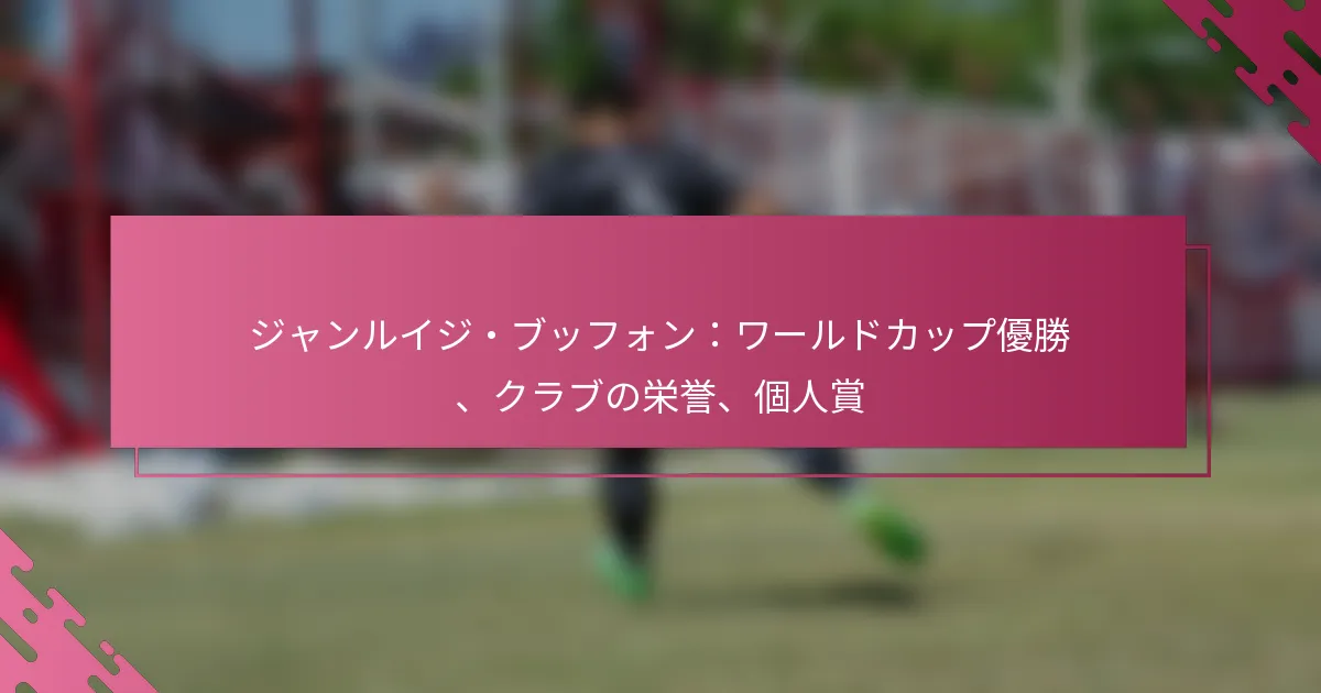 ジャンルイジ・ブッフォンは、2006年のFIFAワールドカップにおけるイタリアの勝利において重要な役割を果たしたことで称賛されています。彼の卓越したゴールキーピングとリーダーシップは、勝利に不可欠でした。ユベントスでの華々しいキャリアを通じて、彼は数多くのクラブタイトルと個人賞を獲得し、サッカー史上最も偉大なゴールキーパーの一人としてのレガシーを確立しました。 ジャンルイジ・ブッフォンのFIFAワールドカップにおける主な業績は何ですか? ジャンルイジ・ブッフォンは、イタリアの2006年FIFAワールドカップの勝利において重要な役割を果たしたことで知られています。彼は卓越したゴールキーピング技術とリーダーシップを示しました。彼の貢献は、タイトルを獲得するだけでなく、ワールドカップ史上最も偉大なゴールキーパーの一人としての地位を確立しました。 2006年FIFAワールドカップにおけるブッフォンの役割の概要 2006年のFIFAワールドカップでは、ジャンルイジ・ブッフォンがイタリアの先発ゴールキーパー兼キャプテンを務め、経験と冷静さでチームをリードしました。彼のゴール前での存在は重要であり、トーナメントを通じて守備陣に安定感と自信を与えました。プレッシャーの中でパフォーマンスを発揮するブッフォンの能力は、イタリアが困難な試合を乗り越えるのに役立ちました。 ブッフォンのリーダーシップは、ゴールキーピング技術を超えて広がっていました。彼はフィールド上で声を上げて守備を組織し、チームメイトを鼓舞しました。彼の冷静な態度は、特にノックアウトラウンドの緊迫した瞬間に集中力を維持するのに役立ちました。このスキルとリーダーシップの組み合わせが、イタリアの成功に不可欠でした。 トーナメント中の重要なパフォーマンスと統計 ブッフォンの2006年ワールドカップでのパフォーマンスは、イタリアを勝利に導くいくつかの重要なセーブによって特徴づけられました。彼は複数のクリーンシートを記録し、シュートストッピング能力とポジショニングを示しました。特に、オーストラリアやドイツに対する重要なセーブは、決勝進出において重要でした。 トーナメント中に21回のセーブを記録。 5回のクリーンシートを達成し、トーナメント最多タイ。 7試合でわずか2ゴールを許した。 彼の統計は、個々の卓越性だけでなく、イタリアの守備全体の効果的な働きを反映しています。ブッフォンのゲームを読む能力と脅威に迅速に反応する能力は、イタリアの守備成功の重要な要素でした。 イタリアの勝利に対するブッフォンのリーダーシップの影響 ブッフォンのリーダーシップは、2006年ワールドカップにおけるイタリアの勝利に重要な役割を果たしました。彼の経験とプレッシャー下での冷静さは、チームメイトに自信を与え、彼らが最高のパフォーマンスを発揮できるようにしました。キャプテンとして、彼は強いチームスピリットを育み、ノックアウトマッチの緊迫した瞬間において不可欠でした。 守備陣との効果的なコミュニケーション能力により、イタリアは一体感のある守備ユニットを維持しました。ブッフォンのリーダーシップは、決勝でのフランスとのPK戦の際に特に顕著で、彼の冷静さがチームを勝利に導くのに役立ちました。 ワールドカップ史におけるブッフォンの記録 ジャンルイジ・ブッフォンは、ゴールキーパーとしての長寿と卓越性を強調するいくつかのワールドカップ記録を保持しています。彼は5回のワールドカップに出場した数少ない選手の一人として認識されており、その驚異的なキャリアの長さを示しています。さらに、ブッフォンはワールドカップのノックアウトマッチでゴールを許さずにプレーした最も長い時間を持つ選手としても知られています。 彼のトーナメントでの業績は、彼のレガシーを確固たるものにし、彼はしばしばスポーツの歴史における最も偉大なゴールキーパーの一人として言及されます。ブッフォンの記録は、彼の個々の才能だけでなく、イタリア代表チームの成功への貢献を反映しています。 トーナメントからの記憶に残る瞬間とハイライト 2006年ワールドカップのいくつかの瞬間は、ブッフォンのキャリアにおいて際立っています。最も記憶に残るのは、決勝でフランスのダビド・サニョルによるPKを防いだ重要なセーブで、イタリアのリードを維持するのに役立ちました。フランスとのPK戦での彼のパフォーマンスもハイライトであり、マルコ・マテラッツィのPKをセーブし、彼の精神的強さを示しました。 もう一つの重要な瞬間は、イタリアが決勝に勝利した後のブッフォンの感情的な反応で、彼が自国に対して抱く情熱と誇りを示しました。これらのハイライトは、彼のトーナメントを定義するだけでなく、イタリアのワールドカップ勝利の物語にも寄与し、ブッフォンを国民的英雄にしました。 ジャンルイジ・ブッフォンはキャリアを通じてどのようなクラブタイトル