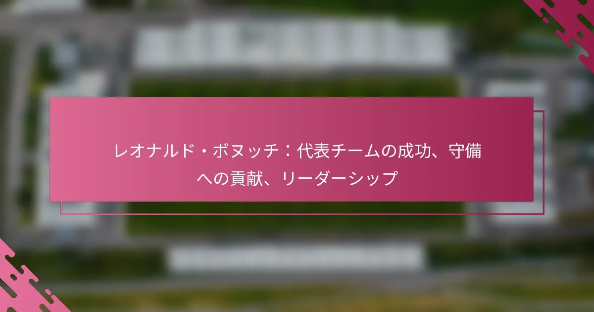 レオナルド・ボヌッチは、イタリア代表チームの要としての地位を確立し、卓越した守備スキルと強力なリーダーシップを兼ね備えています。彼の主要な大会での貢献は、勝利を確保するだけでなく、プレッシャーの中でのパフォーマンス能力をも示しています。鋭い戦術的な意識とチームメイトを鼓舞する能力を持つボヌッチの影響力は、彼の守備力を超えて広がり、イタリアサッカーにおける重要な存在となっています。 レオナルド・ボヌッチのイタリア代表チームでの主な業績は何ですか? レオナルド・ボヌッチは、イタリア代表チームに対して重要な貢献をしており、守備スキル、リーダーシップ、重要な試合でのパフォーマンス能力を示しています。彼のキャリアには、主要な大会への参加、注目すべき勝利、そしてチームの成功に対する影響を強調する個人賞が含まれています。 参加した主要大会 FIFAワールドカップ: 2014年, 2018年 UEFA欧州選手権: 2012年, 2016年, 2020年 UEFAネイションズリーグ: 2019-2020, 2020-2021 注目すべき勝利とマイルストーン ボヌッチは、UEFAユーロ2020でのイタリアの勝利において重要な役割を果たし、チームはイングランドをPK戦で破って優勝を果たしました。この勝利は、1968年以来のイタリアの初の欧州タイトルを意味し、ボヌッチの代表チームにおける重要な選手としてのレガシーを確固たるものにしました。 ユーロ2020の勝利に加えて、ボヌッチはUEFAユーロ2012の決勝に進出したチームの一員でもあり、イタリアは準優勝に終わりました。これらの高圧の試合での彼の一貫したパフォーマンスは、国際舞台で信頼できるディフェンダーとしての地位を確立しました。 個人賞と認識 ボヌッチの貢献は見逃されておらず、彼はキャリアの中でいくつかの個人賞を受賞しています。彼はUEFA年間ベストイレブンやFIFProワールドXIに選出され、世界のベストディフェンダーの一人としての地位を認められています。 彼のリーダーシップの資質は、代表チームの副キャプテンに任命された際に認められ、コーチやチームメイトからの信頼を反映しています。この役割は、チームのダイナミクスにポジティブな影響を与えることを可能にしました。 チームパフォーマンスへの影響 ボヌッチの守備的な貢献は、特に主要な大会におけるイタリアの成功において重要な役割を果たしています。彼のゲームを読む能力、重要なタックルを行う能力、そして守備を組織する能力は、堅固なバックラインをもたらし、重要な試合でのクリーンシートにつながることが多いです。 彼の経験とプレッシャー下での冷静さは、若い選手たちの成長を助け、強いチームスピリットとレジリエンスを育んでいます。ボヌッチのフィールド上での存在は、特に重要な瞬間にチーム全体のパフォーマンスを向上させることがよくあります。 国際試合の統計 国際キャリアを通じて、ボヌッチはイタリア代表チームで120キャップ以上を獲得し、イタリアの歴史の中で最もキャップを持つ選手の一人となっています。彼は数ゴールを決めており、主にセットプレーから得点を挙げ、攻撃的にも貢献できる能力を示しています。 彼のパフォーマンス統計は、試合における成功したタックルやインターセプトの高い割合を反映しており、彼の代表チームに対する重要性とイタリアの守備の要としての役割を強調しています。 レオナルド・ボヌッチはフィールドでどのように守備に貢献していますか? レオナルド・ボヌッチは、タックル、パスのインターセプト、クリーンシートの維持において卓越したスキルを示し、守備において重要な役割を果たしています。彼の戦略的なポジショニングとフィールド上でのリーダーシップは、チーム全体の守備パフォーマンスを向上させます。 守備統計: タックル、インターセプト、クリーンシート ボヌッチの守備的な貢献は、さまざまな統計を通じて定量化できます。彼は試合ごとに一貫して多くのタックルを平均し、重要な試合ではしばしば二桁に達します。彼のインターセプト率も印象的で、リーグ内のトップディフェンダーの一人として頻繁にランクインしています。 クリーンシートに関しては、ボヌッチはチームのためにこれらの結果を確保する上で重要な役割を果たしており、彼がピッチにいるときは高い割合で試合が無失点で終わります。この統計は、彼の個々の能力だけでなく、効果的に守備を組織する能力を反映しています。 プレースタイルと技術の分析 ボヌッチのプレースタイルは、戦術的な意識とプレッシャー下での冷静さによって特徴づけられています。彼はゲームを読むことに優れており、相手の動きを予測し、適切にポジショニングすることができます。正確なパスで後方からのビルドアップを行う能力は、彼の守備的役割に攻撃的な次元を加えます。 彼は身体的な強さと敏捷性の組み合わせを利用し、1対1の状況で非常に強力です。空中戦においても優れた能力を持ち、守備のデュエ
