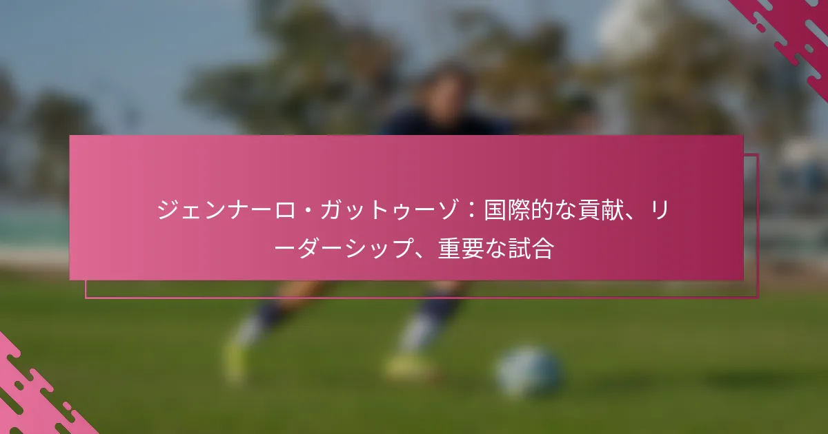 ジェンナーロ・ガットゥーゾは、イタリア代表チームにとって重要な存在であり、彼の relentless tenacity(不屈の粘り強さ)と強いリーダーシップが認識されています。彼の広範な国際キャリアの中で、重要なトーナメントに出場し、チームメイトを鼓舞し、重要な試合での勝利を確保する能力を示しました。 ジェンナーロ・ガットゥーゾの国際的な貢献は何ですか? ジェンナーロ・ガットゥーゾは、イタリア代表チームに対して重要な貢献をし、フィールド上での粘り強さとリーダーシップで知られています。彼の国際キャリアは10年以上にわたり、重要なトーナメントに参加し、多くの賞を受賞しました。 イタリア代表チームにおけるガットゥーゾの国際キャリアの概要 ガットゥーゾの国際キャリアは1998年に始まり、2010年まで続きました。その間、彼はイタリア代表として70試合以上に出場しました。彼は2006年のFIFAワールドカップで優勝したチームの重要な一員であり、守備スキルと勤勉さを示しました。ミッドフィールダーとしての彼の役割は、アグレッシブなタックルとボールへの relentless pursuit(執拗な追求)によって特徴づけられ、ファンのお気に入りとなりました。 キャリアを通じて、ガットゥーゾはチームメイトを鼓舞し、特にプレッシャーのかかる状況でチームスピリットを維持する能力で知られていました。彼のリーダーシップの資質は、ピッチの内外で明らかであり、コーチや選手からの尊敬を集めました。 ガットゥーゾが参加した主要トーナメント 1998 FIFAワールドカップ(フランス) 2000 UEFA欧州選手権(ベルギーとオランダ) 2002 FIFAワールドカップ(韓国と日本) 2004 UEFA欧州選手権(ポルトガル) 2006 FIFAワールドカップ(ドイツ) 2008 UEFA欧州選手権(オーストリアとスイス) 国際試合の統計と受賞歴 国家代表チームでの時間の中で、ガットゥーゾは70試合以上の国際試合に出場し、守備と攻撃の両方に貢献しました。彼はセットプレーやカウンターアタックから数ゴールを決めました。彼のパフォーマンスは高いタックル成功率と多くのインターセプトによって特徴づけられ、守備力を示しました。 ガットゥーゾの受賞歴には、2006年のFIFAワールドカップ優勝チームの一員としての役割が含まれ、イタリアのミッドフィールダーとして重要な役割を果たしました。さらに、彼はさまざまなUEFAトーナメントでの貢献が認められ、トップレベルの国際選手としての評判を確立しました。 ワールドカップとUEFA欧州選手権における重要な貢献 ガットゥーゾの最も顕著な貢献は、2006年のFIFAワールドカップ中に見られ、イタリアの勝利への道のりにおいて重要な役割を果たしました。彼の relentless energy(不屈のエネルギー)と相手のプレーを破壊する能力は、ノックアウトステージ、特にフランスとの決勝戦で重要でした。 UEFA欧州選手権では、ガットゥーゾのパフォーマンスも同様に影響力があり、特に2000年と2004年のトーナメントで際立っていました。彼の守備スキルは、2000年にイタリアが決勝に進出するのを助け、準優勝に終わりましたが、その後のトーナメントでも重要な選手であり続けました。 ガットゥーゾの国際的なパフォーマンスの同僚との比較 選手 出場試合数 ゴール数 主要トーナメント ジェンナーロ・ガットゥーゾ 73 2 2ワールドカップ、3欧州選手権 アンドレア・ピルロ 116 13 4ワールドカップ、3欧州選手権 フランコ・バレージ 81 0 3ワールドカップ、2欧州選手権 ガットゥーゾのパフォーマンスは、同僚の中にはゴール数で劣るものの、守備への貢献とリーダーシップによって特徴づけられました。彼の統計は、相手の攻撃を破壊することに焦点を当てた異なるスタイルのプレーを反映しており、イタリア代表チームにとってユニークな資産となっています。 ジェンナーロ・ガットゥーゾはピッチ内外でどのようにリーダーシップを示しましたか? ジェンナーロ・ガットゥーゾは、情熱的なプレー、戦略的思考、チームメイトを鼓舞する能力を通じて、ピッチ内外で卓越したリーダーシップを示しました。イタリア代表チームのキャプテンとしての役割は、チームの成功へのコミットメントと重要な試合状況での影響力を強調しました。 代表チームにおけるキャプテンおよびリーダーとしてのガットゥーゾの役割 イタリア代表チームのキャプテンとして、ガットゥーゾはレジリエンス(回復力)と決意の精神を体現しました。彼は模範を示し、トレーニングや試合中に強い労働倫理と揺るぎないコミットメントを示しました。彼のリーダーシップはオープンなコミュニケーションによって特徴づけられ、チームメイトが自分の考えや戦略を表現することを奨励しました。 ガットゥーゾは、多様なバックグラウンドを持つ選手たちを団結させる能力を持ち、チームの一体感を育みました。彼はしばしば対立を解決し、士気を維持するためにイニシアティブを取り、全員が勝利という共通の目標に集中できるようにしました。 チーム